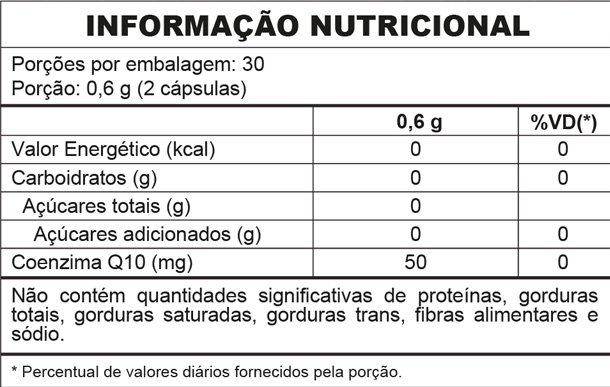 • Dose ideal de 50 mg de Coenzima Q10 por porção