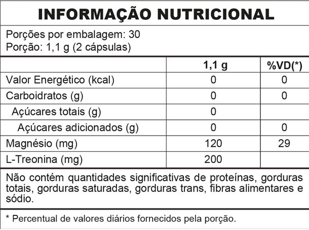 O Lucovita L-Treonat + Treonina + Magnésio reúne ativos que atuam diretamente no equilíbrio neuromuscular, no funcionamento cerebral e na qualidade do sono. Sua fórmula conta com 120 mg de magnésio e 200 mg de L-Treonina, um aminoácido importante para o metabolismo do sistema nervoso e a produção de neurotransmissores como a glicina e a serina.